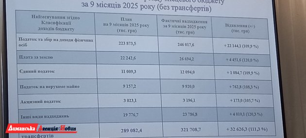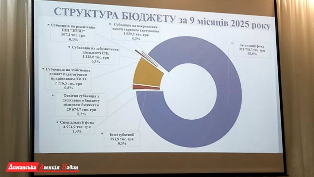 Бюджетні питання розглядалися шляхом розгляду звітів про виконання бюджету сільської ради за 9 місяців 2025 року, про передачу коштів субвенції з місцевого бюджету сільської ради до державного бюджету на виконання програм соціально-економічного розвитку регіонів (доповідач Оксана Степанова — начальник фінансового відділу). Зокрема, зазначено, що по доходах загального фонду бюджет Визирської сільради за даний період складає 355 млн 350 тис. 900 грн, а за весь 2025 рік прогнозований дохід визначено у розмірі 445 млн. 057 тис. 493 грн.![]()