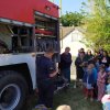 Велика яскраво-червона машина була у центрі уваги учнів протягом години. Пожежники продемонстрували спорядження, дали учням можливість відчути себе справжніми борцями з вогнем, і навіть дозволили всім охочим побувати всередині пожежної машини. Кульмінацією зустрічі було те, працівники пожежно-рятувальної служби вміло продемонстрували як працює технічне обладнання.