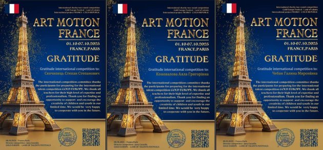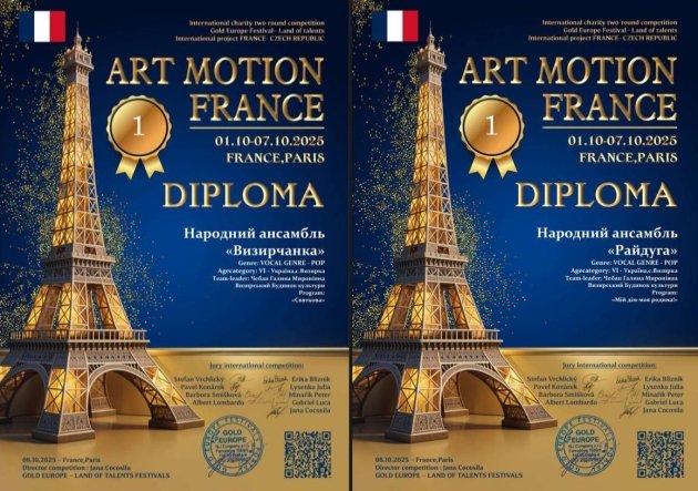 Колективи Визирського будинку культури підкорили Міжнародний благодійний двотуровий конкурс мистецтв ART MOTION FRANCE, що відбувся 7 жовтня в Парижі. Учасники з Визирської громади брали участь дистанційно. Про це повідомляється на Facebook-сторінці Визирського БК.
