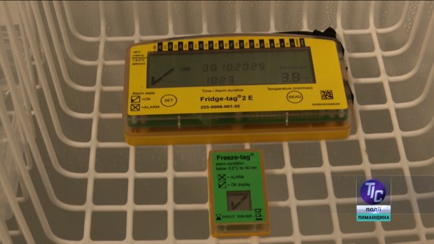 У нас есть такие холодильники, электронные термологеры, которые мы каждый месяц подключаем к компьютеру и делаем полный анализ температурного режима. Также у нас есть морозильная камера для термоэлементов. Если у нас возникнут проблемы со светом, благодаря этим термоэлементам мы можем сохранять вакцины. Также мы можем вакцины эвакуировать, например, если это амбулатория в Причерноморском, мы можем их перевезти безопасно к нам, не нарушая температурного режима.