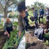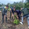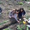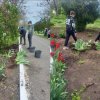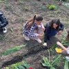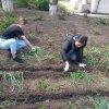 Закончили пересаживать цветы на новое место, демонтировали старую клумбу, искоренили дикие розы и кусты, разбросали землю.